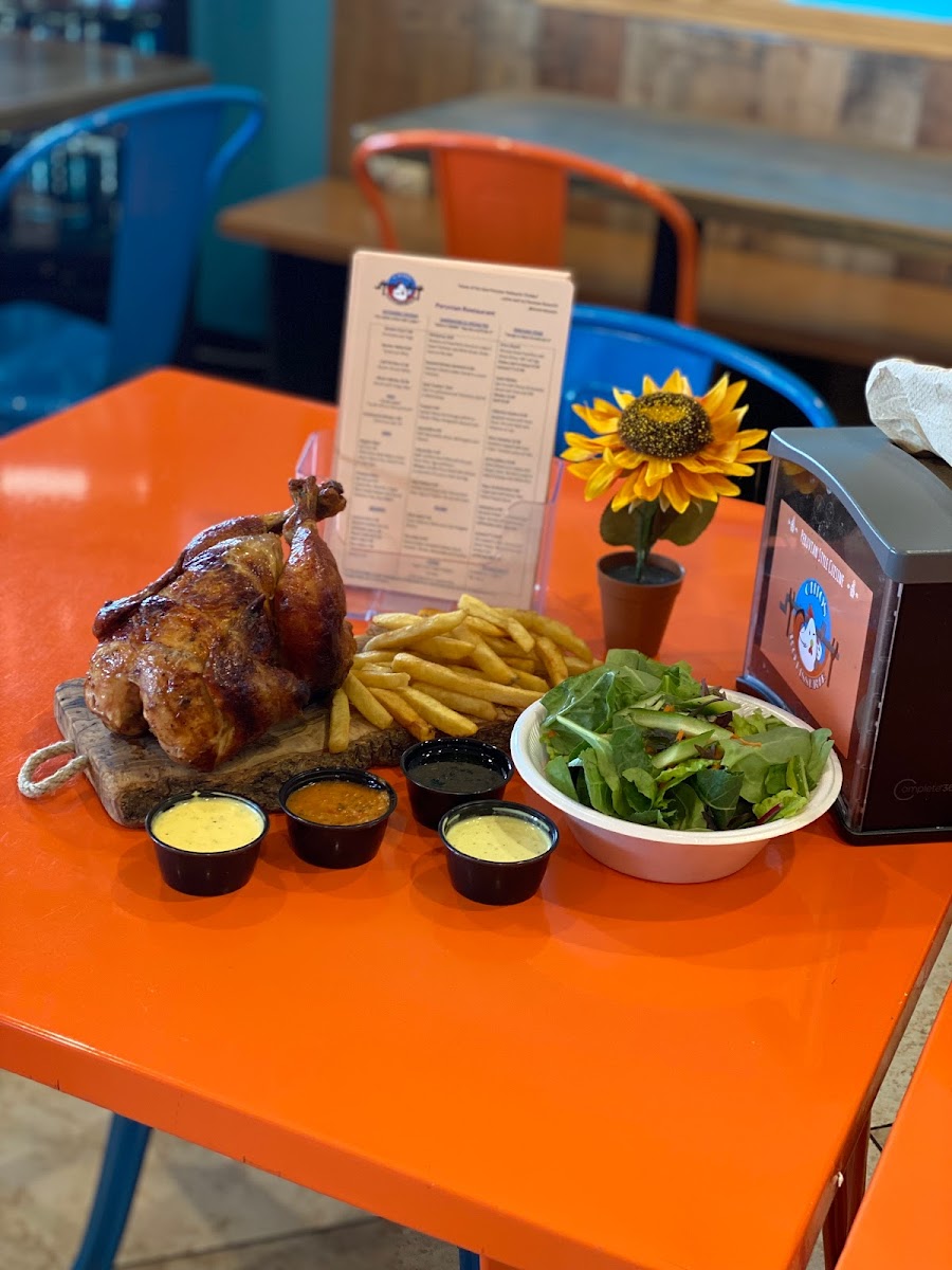 But the menu doesn't stop at rotisserie chicken. While it’s the star, the dishes that accompany it are equally impressive. The menu offers a variety of sides, like crispy fries, fresh salads, and grilled vegetables, all cooked with care and attention to detail. A standout is the hummus, made in-house with a creamy texture and the perfect balance of flavors. It pairs wonderfully with their warm pita bread, which seems to always be fresh out of the oven.
